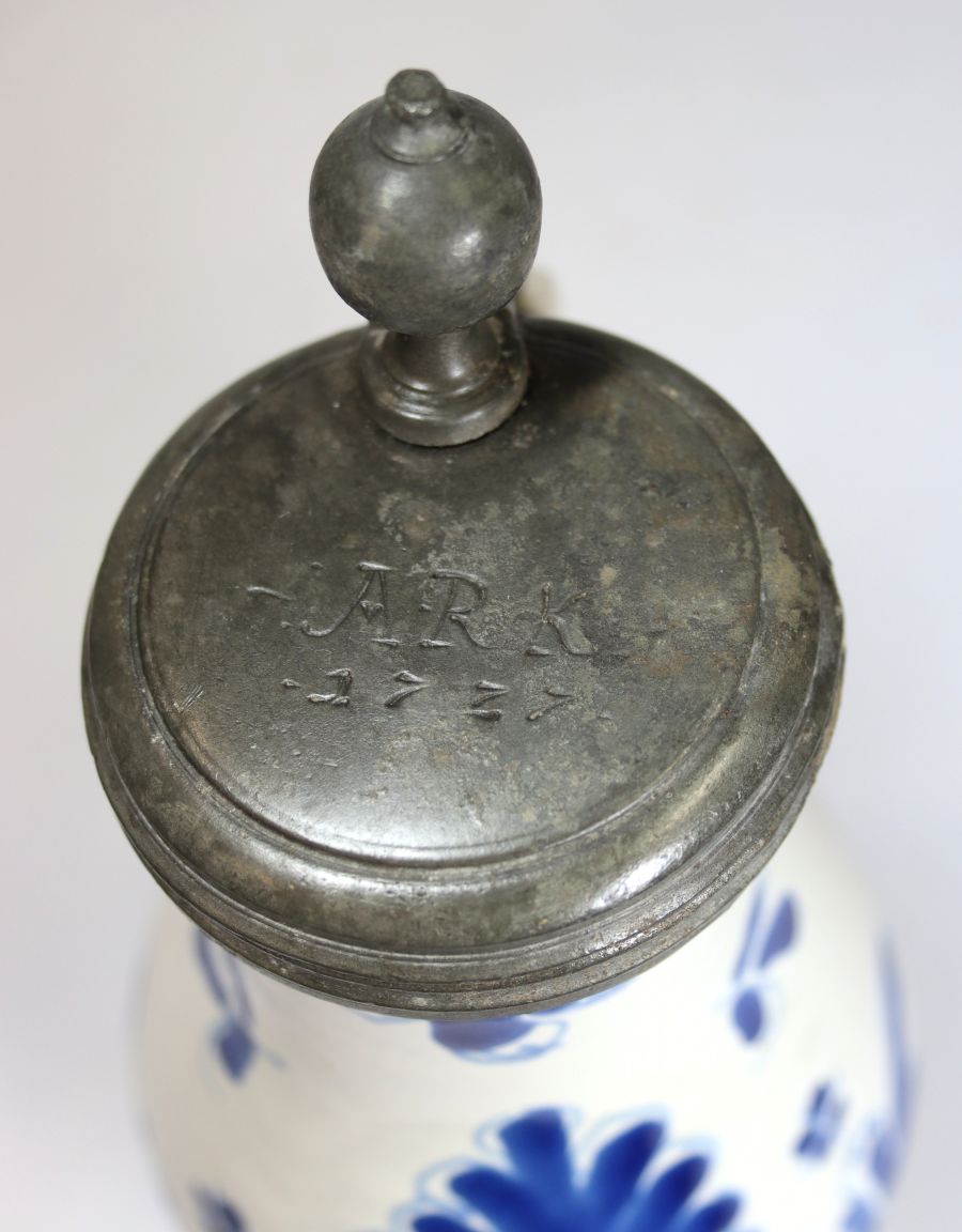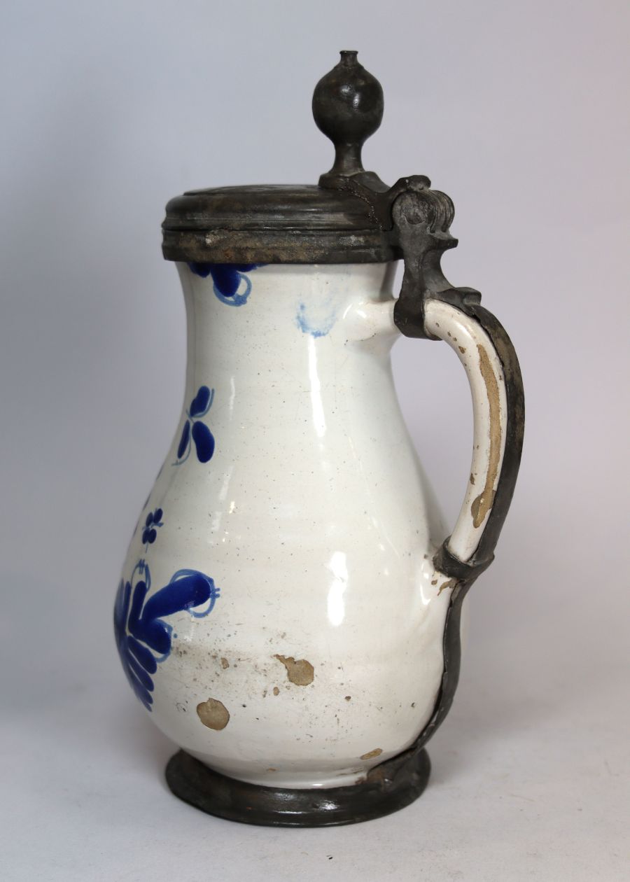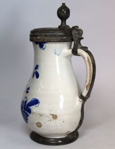 Posthabaner Fayencekrug KurzbeschreibungFayence-Birnkrug mit Zinndeckel BemalungBlattornamente HerkunftHaban / Slowakei DatierungDeckel mit Datierung: 1727 ZustandSehr guter Zustand, kleine Glasurfehler MaßeHöhe: 21 cm Artikelnummer4924 Preis€ 2500.- ← Mettlachkrug